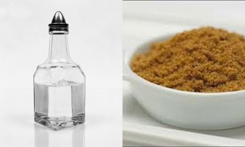 Trộn hỗn hợp dấm với nước ấm và đường nâu(nên để nguyên hạt đường đừng đánh tan hết vào nước).